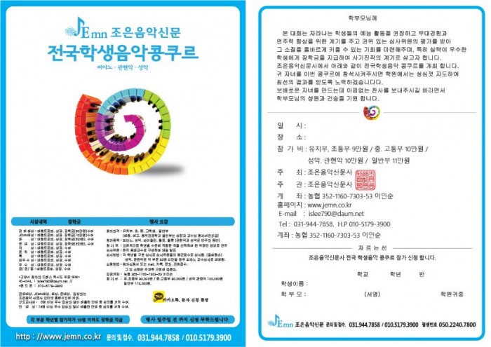 참가신청서 가정통신문 페이지 정보 작성자 jemncokr 작성일15-09-07 15:02 조회3,089회 댓글0건 이전글 다음글 목록 글쓰기 본문 부모님께 보내드리는 가정통신문 참가 신청서 입니다 ^^ 인쇄 하실때는 오른쪽 마우스 클릭하시고 사진으로 인쇄하시면 됩니다 ^^ 댓글목록 등록된 댓글이 없습니다. 이전글 다음글 목록 글쓰기